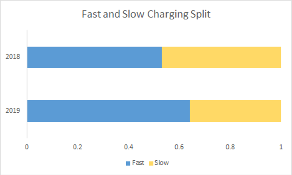 Similarly, ELVs show a distinct preference for high-power fast charging infrastructure. The same analysis shows that from 2018 to 2019, the proportion of fast charging increased by 11 percent (from 53 to 64 percent). Despite the availability of slow charging, the ELV drivers in Shenzhen demanded public fast charging.