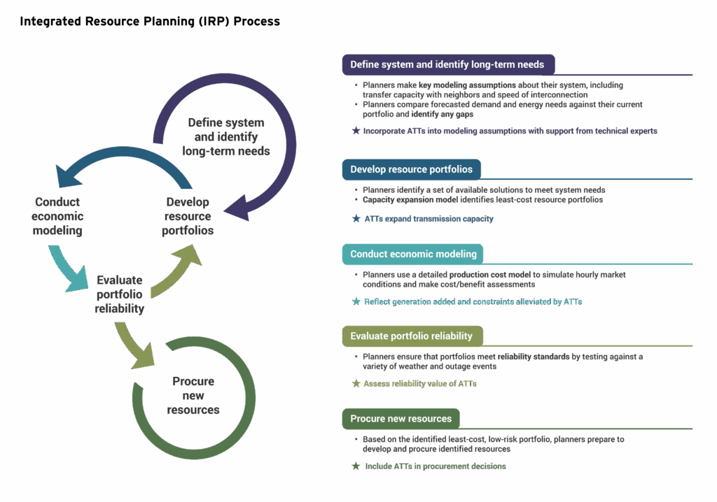 - Planning laws require utilities, public utility commissions (PUCs), and/or grid operators to study the economics and feasibility of ATTs during resource and transmission planning. Some laws require ATT deployment if studies show they are cost-effective; others leave more discretion to utilities and regulators. Some planning laws require that ATTs be included in integrated resource plans (IRPs) or require large transmission owners to submit a separate GETs evaluation.