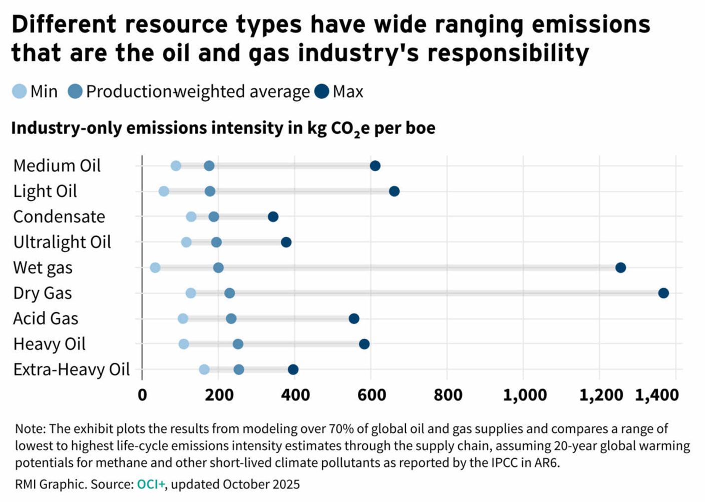 RMI’s data also analyzes oil and gas by resource types. And here, differences in emissions intensities are large enough to matter.