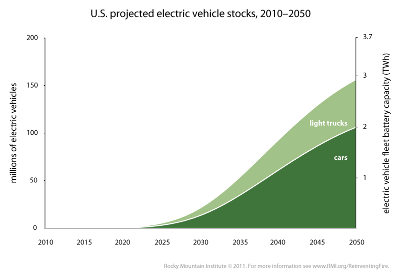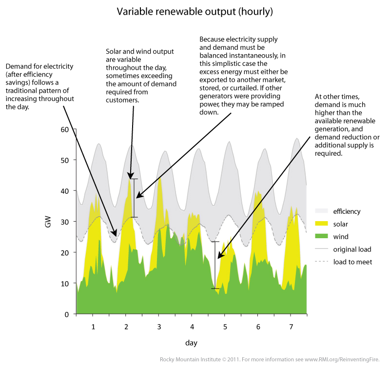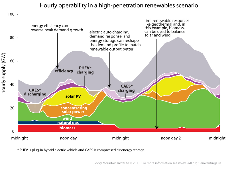 Together, wind and solar will account for 71% of total U.S. installed capacity in 2050 in Rocky Mountain Institute’s Transform case, up from 4.4% in 2010. Along with hydro, geothermal, and biomass, renewables will meet more than 80% of 2050 U.S. electricity demand.