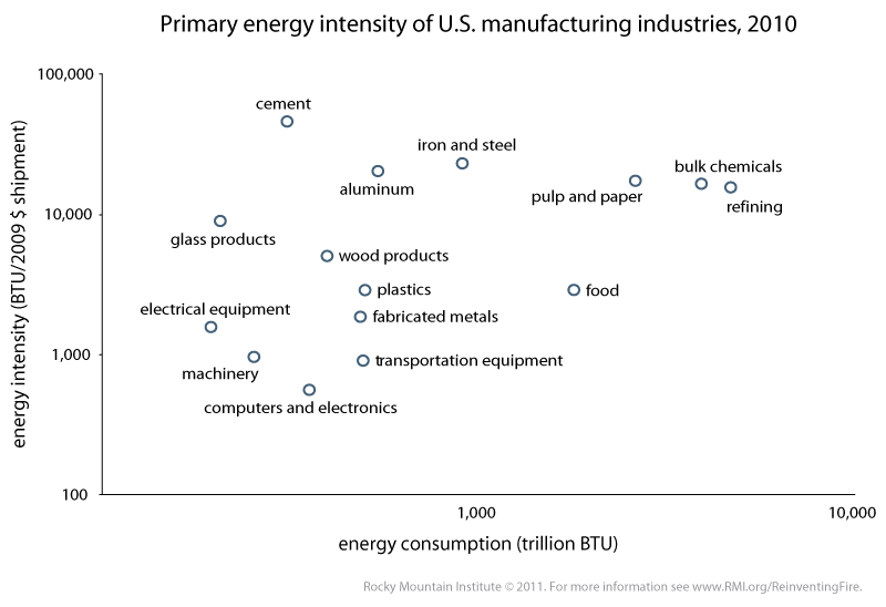 Industry has a huge variety of subsectors that differ markedly in energy consumption and intensity (energy used per $ of shipment).