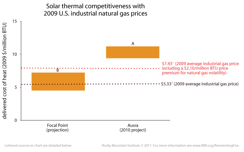 Given the high volatility of natural gas prices, pricing for solar thermal projects on a lifecycle cost of heat basis can be competitive with natural gas.