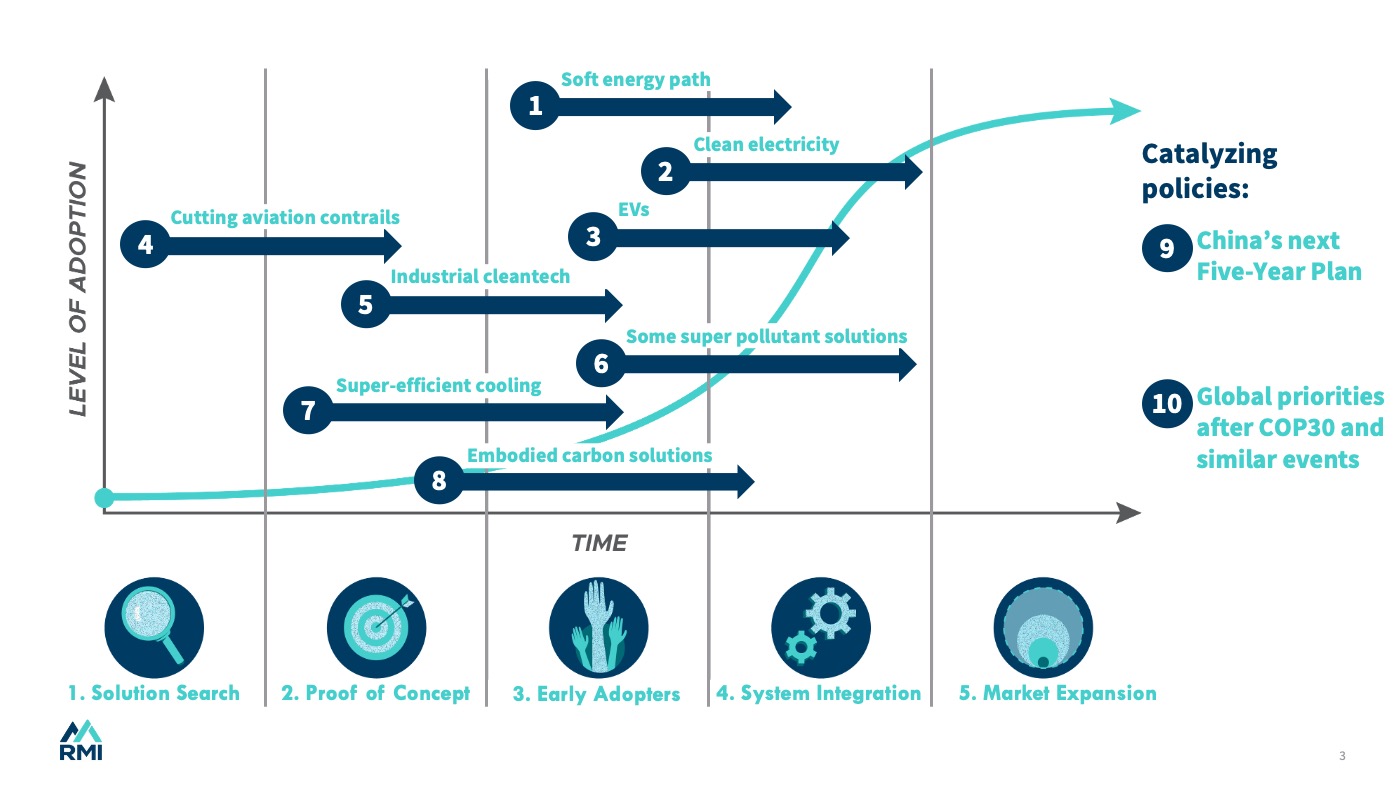 Though early-stage field-building remains, many solutions intersect with energy transition efforts that are well into phases 3 and 4 of deployment. Enabling conditions are catching up, from recent landfill methane policies to corporate credit purchases that reach more sectors. If this progress continues, it can leverage a crucial opportunity to cut warming fast.