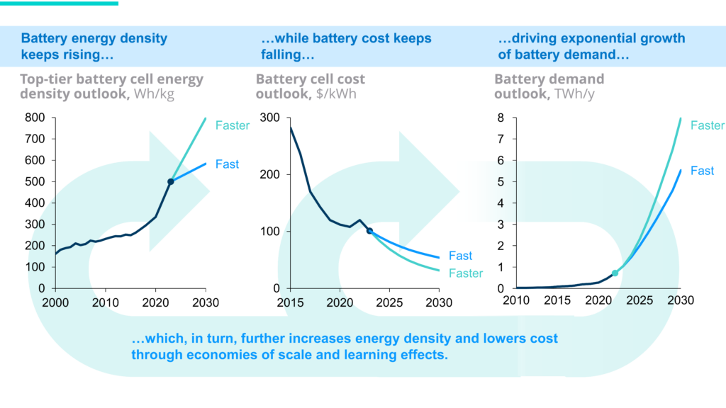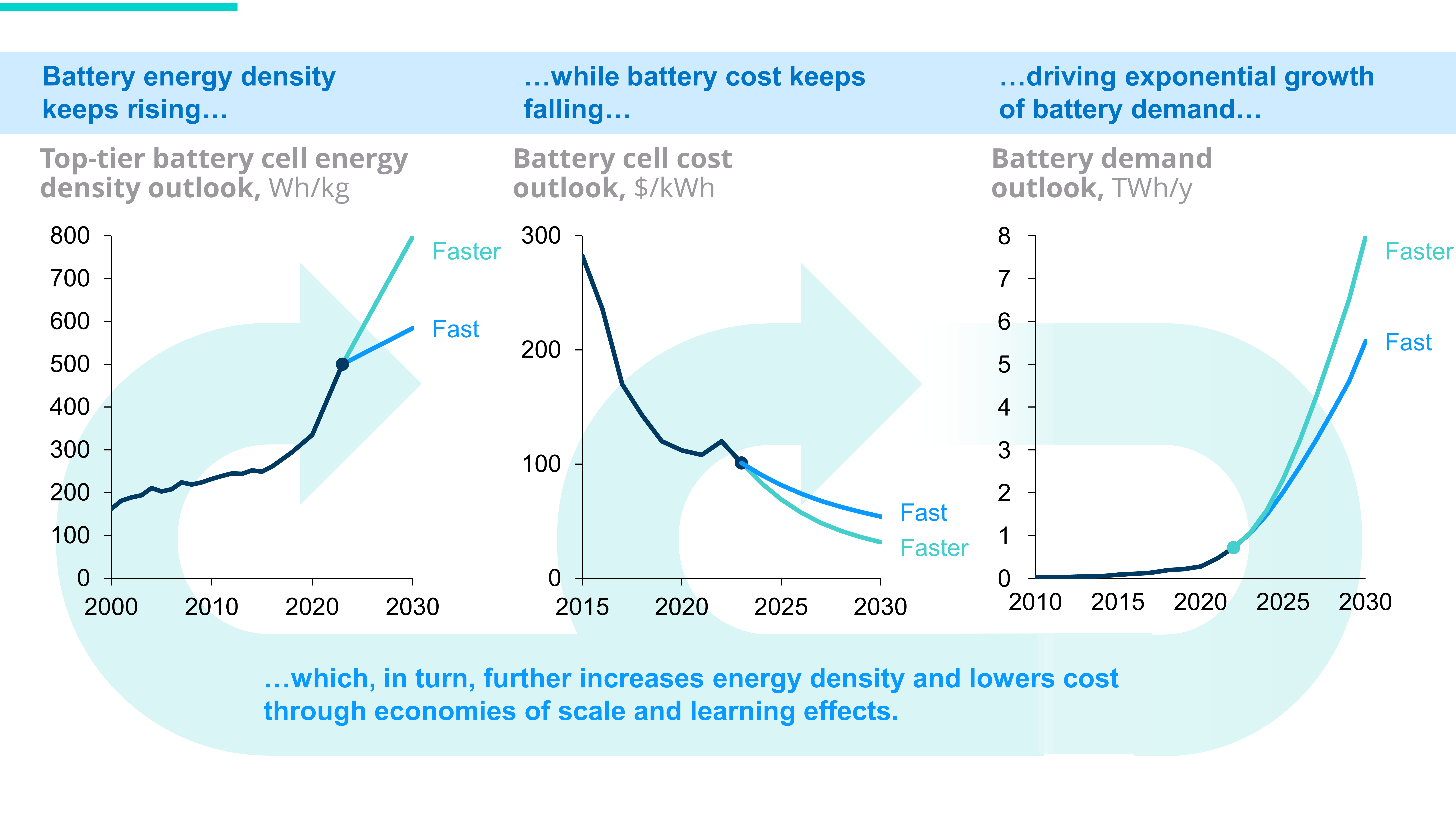 Exhibit 5: A reinforcing feedback loop between battery quality, cost and market size