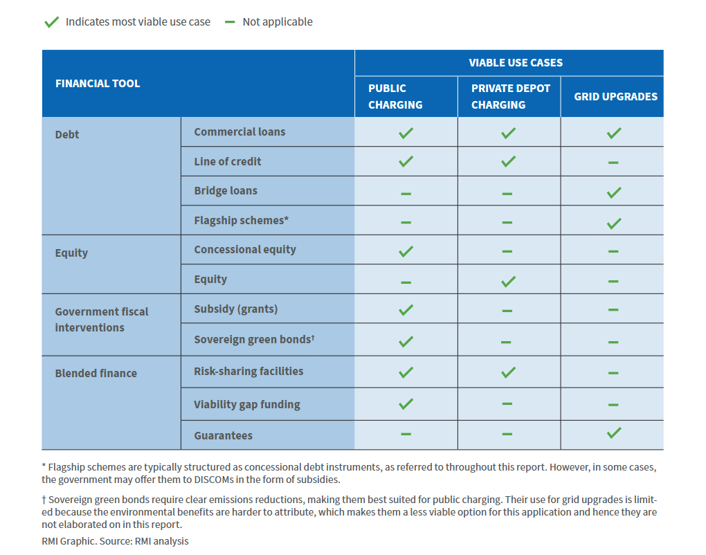 Different financing solutions will be required for public charging, private depot charging, and grid upgrades, as summarized in the table below.
