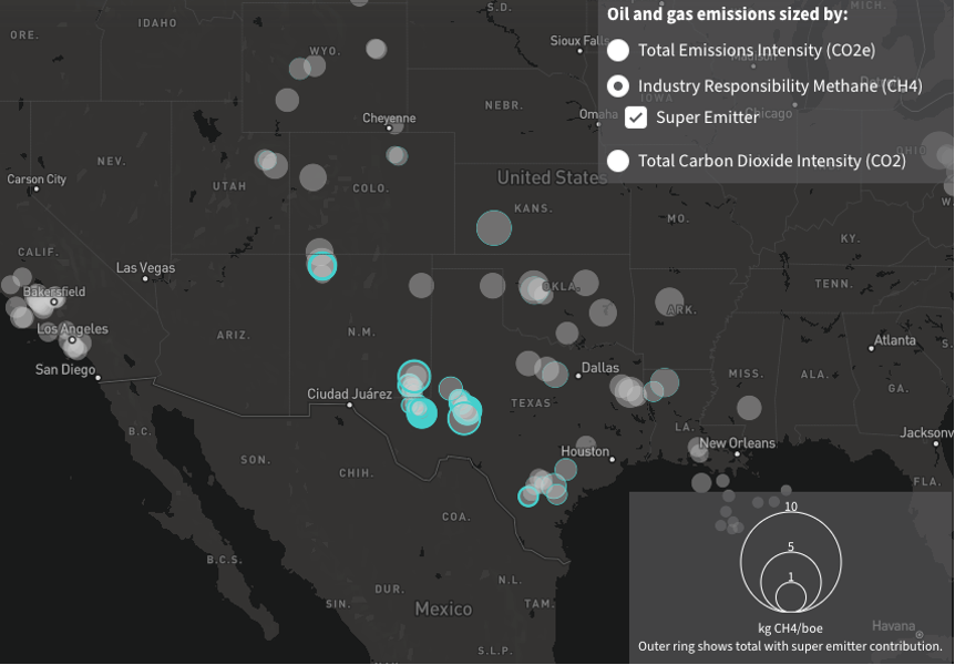 Texas super-emitters stand out on the map of US oil and gas methane intensities